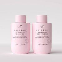 Enjoy luxury haircare on the go with our Hair Gain Hydrating Shampoo & Conditioner Travel Duo. Perfectly sized at 70ml each, these minis are enriched with peptides, vitamins, and marshmallow root to deeply hydrate, strengthen, and smooth - leaving hair soft, shiny, and healthy-looking on every journey. - Compact 70ml bottles - perfect for weekends away or carry-on luggage - Hydrates, strengthens & smooths with peptides, vitamins & marshmallow root - Reduces frizz & boosts shine for soft, healthy-looking hair - Trichologist approved and dermatologically tested - Vegan and Halal certified - Safe for all hair types including coloured & treated hair - No parabens, silicones or sulphates - Convenient duo - includes 1x shampoo (70ml) & 1x conditioner (70ml) | Debenhams Hydrating Shampoo & Conditioner Travel Size Duo 70ml - Manufacturers part number: Debenhams_5060757230971