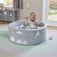 - FEATURES: Ideal for 6 months to 3 years old children, this soft foam round ball pit is the perfect soft toy play accessory for your baby or young child. As well as being a safe and fun place to play, it provides both therapeutic and multi-sensory benefits for your little one. Arctic ball pit comes with 200 plastic balls in a mix of white and grey.