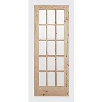 Rustic, unpainted solid pine door. Features 15 clear toughened glass panels, ideal for opening up smaller spaces by letting extra light into the room. 11mm lipping allows for up to 7mm to be taken off from each side on installation, and 25mm from the bottom. Supplied unpainted and ready for a choice of finishes or paints. For use with 4-inch hinges (sold separately). Solid Pine Construction Non-Handed Clear Standard Windows 10 Year Manufacturer££s Guarantee (Registration Required, T&Cs Apply) - Manufacturers part number: 865FA