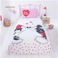 Disney Mickey And Minnie Duvet Set Single C'est l'amour. This offically licensed duvet set, brings Classic Minnie & Mickey together for a timeless Disney look. Includes one single duvet cover (137 x 198cm) and one pillowcase (50 x 75cm). 100% cotton. Machine washable at 30C and can be tumble dried. Height: 198 CM Material Content: 100% cotton Washing Instructions: Machine Washable Width: 135 CM Design Type: Patterned Officially licensed product Reversible design Duvet Cover: 135cm X 198cm approx Pillo...