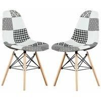 The Patchwork side Chair is a standout piece, featuring a molded polypropylene body with foam cushioning for intelligent support and exceptional comfort, whether you're dining or lounging with a book. Its durable patchwork fabric adds a bold, eye-catching touch to any space, while the iconic style legs with plastic feet protect your floors from scratches. Constructed from premium materials, this chair offers both superior comfort and long-lasting durability, making it perfect for everyday use. The solid wooden legs and internal metal frame ensure sustainability and resilience. We take pride in offering high-quality designer chairs at an affordable price, making them ideal for homes, flats, apartments, and offices. | Life Interiors Set of 2 Patchwork Modern Dining Chairs with Wooden Legs & Black Metal Wire Frame - Manufacturers part number: Life Interiors_5060847952882