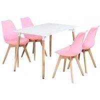 The highly recommended Scandinavian style Lorenzo dinette set includes a modern dining table and dining chairs set of 4. The padded kitchen set will match any room due to its classic design and will give a sophisticated touch to your furniture. The sturdy wooden table and kitchen chairs with padded faux leather seats offer a comfortable sitting experience. The legs feet are covered with end caps that protect your floor from scratching, in the meantime make this dinette set anti-slip, anti-noise and enhance its stability. Perfect for kitchen storage, dining rooms, living rooms, and many more. Hence, offers a practical and modern seating solution to your home and living space. | Life Interiors 5 Pieces Dining Set - a Halo Dining Table & Set of 4 Lorenzo Tulip chairs with Padded Seat in Pink - Manufacturers part number: Life Interiors_5060847956750