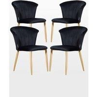 The Elsa Dining Chair combines modern elegance with everyday functionality, featuring a generously padded, curved backrest and a spacious seat cushion designed for maximum comfort and support during long periods of sitting. Built on a durable metal frame with stylish wood-effect foil-wrapped legs, this chair offers a sleek, contemporary look while ensuring long-lasting stability and wear resistance. The ergonomic design provides excellent lumbar support, making it perfect for dining, working, or relaxing without discomfort or fatigue. Crafted from premium materials for superior comfort and durability, the Elsa chair is an ideal addition to any dining room, home office, or living spacesolving common customer concerns like lack of support, short-term use, or clashing design with a stylish and supportive seating solution made for daily living. | Life Interiors Set of 4 Elsa Velvet Dining Chairs with Wooden Legs, Curved Back & Comfortable Seating in Black - Manufacturers part number: Life Interiors_5060847958440