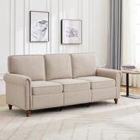 Our new Sofa is a luxurious foam padded large 3 seater settee wrapped in a beige linen fabric. Featuring studded detailing to accentuate the rolled arms and beautifully crafted wooden legs makes for a visually appealing design. With practicality also in mind the sofa is raised so you can still vacuum under neath or even hide your book under their ready for your relax time. Whether you're curling up on the couch with a good book or entertaining guests, this settee is sure to be the centrepiece of your h...
