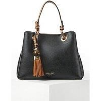 Luella Grey Gala Black Crossbody Tote - Black Looking for a sophisticated handbag for chic lunches, browsing boutiques or going out for dinner Featuring the signature Thames tassel charm, Gala is delightfully designed with the two-tone colour block and is the go-to bag for you. With three spacious compartments, an internal zipper pocket, a clip for keys and a back slip-in pocket, the Gala tote fits in all the essentials you need. Gala comes complete with an adjustable crossbody strap, our signature meta...