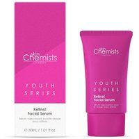 Target fine lines, wrinkles, and dullness with our skinChemists Youth Series Retinol Facial Serum, a potent 30ml solution designed to revitalise ageing and uneven skin. Enriched with Retinol and Hyaluronic Acid, this vegan and cruelty-free serum works to diminish visible signs of ageing, boost hydration, and enhance your skin's natural glow for a smoother, more radiant complexion, free from parabens and sulphates. Apply daily to achieve a refined, youthful look and experience a noticeably brighter, silkier feel. | skinChemists Youth Series Retinol Facial Serum 30ml in White - Manufacturers part numbers: skinChemists_5060881920441|HSC017