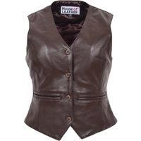 Real leather waistcoat vest. The vest features a flattering V-neckline, classic button-up front, and two front slit pockets for a refined finish. Its tailored cut ensures a feminine silhouette, while the soft inner lining provides all-day comfort