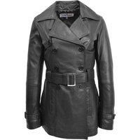 A classic real leather double breasted trench coat, a true indulgent excellent tailored fitted cut design. Made from soft and light lamb nappa leather. This jacket features a double breasted fastening, adjustable waist belt, buckle feature on the cuffs and two front pockets. Inside fully lined with polyester | House of Leather Women's Sienna Real Leather Double Breasted Mid Length Trench Coat Black 16 | Size: 8