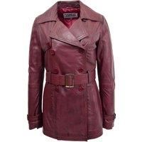 A classic real leather double breasted trench coat, a true indulgent excellent tailored fitted cut design. Made from soft and light lamb nappa leather. This jacket features a double breasted fastening, adjustable waist belt, buckle feature on the cuffs and two front pockets. Inside fully lined with polyester | House of Leather Women's Sienna Real Leather Double Breasted Mid Length Trench Coat Black 16 in Burgundy | Size: 18