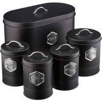 Kitchen Storage Set Bread Bin Sugar Tea Coffee Black Silver- Cooks Professional