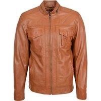 A fantastic casual everyday-use jacket with zip detailing around the neckline. Made from soft touch sheep nappa leather. It features four outer pockets, zip fastening and zipped cuffs. Inside polyester lining | House of Leather Men's Mens Real Leather Biker Jacket Casual Style Jaime in Tan | Size: Medium
