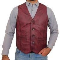 A fantastic waistcoat made from genuine lightweight sheep nappa leather. It feature a five single breasted fastening, two front pocket and a waist adjusters at the back to refine the fit. Inside polyester lining. | House of Leather Men's Mens Real Leather Waistcoat Classic Gilet Nick in Burgundy | Size: Medium