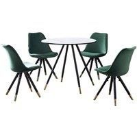 Bring a flexible gaze to your eye-catching kitchen with this space-saving Sofia Dorchester Versatile LUX Dining Set. The set comes with a Dorchester Lux Dining Table featuring a premium quality table top that has been crafted from MDF and 3D paper. A table is supported by exquisite black powder-coated metal legs with gold-tipped feet for that added oomph. The table legs are non-slip, anti-rust, waterproof, and stable accompanied by non-slip foot pads protecting your floor and carpet. Also, the Retro chairs feature a curved back and velvet padded seat, supported by four metal legs that provide enduring strength and sturdiness. Moreover, the legs also have gold round adjustable feet that improve their stability and add great value to your interior. Our ergonomic chair offers an exceptionally comfortable sitting experience. Since the dining chair cushion is soft and stylish, the curved back is the definition of elegance, providing your low back or spine enough support for a long-term rela... - Manufacturers part number: Life Interiors_5060926385198