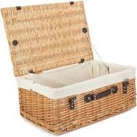 Full buff willow with double real leather hinges and straps. with or without a removable cotton lining. Attractive looking . High Quality, Well made Basketware. Natural product so dimensions can vary slightly. Manufactured from sustainable materials. Colours and finish could vary. Size Depth 37 x Height 26 x Width 56cm Weight 2kg Material Wicker - Manufacturers part number: EH058W