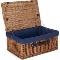 Finished in Full double steamed willow with dark brown leather straps and metal chains with or without a removable cotton lining. Attractive looking . High Quality, Well made Basketware. Natural product so dimensions can vary slightly. Manufactured from sustainable materials. Colours and finish could vary. Size Depth 37 x Height 26 x Width 56cm Weight 2.2kg Material Wicker - Manufacturers part number: EH151N