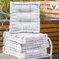 This set of 4 padded cushions makes the perfect addition to any outdoor or indoor dining chair to add comfort and style. Each large square seat pad features a grey stripe. Perfect for adding style and colour. Complete with a waterproof finish, these vintage inspired seatpads are a great accessory for your home.