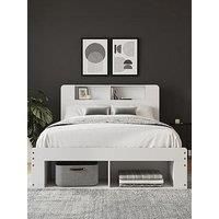 GFW Anya 135cm Wooden Ottoman Bed White Transform cramped quarters into a clutter-free sanctuary with our white end-lift Ottoman Storage Bed-the ultimate space-saving bed frame that hides four types of storage in one sleek platform. Four Ways to Store, One Footprint. End-lift ottoman base - gas-lift assisted pistons raise the mattress from the foot, revealing a dust-proof cavity for spare duvets, luggage or off-season clothes. Headboard cubbies - two generous niches act as built-in nightstands for books...