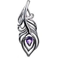 Elegant peacock feather statement brooch set with a pear shaped natural African purple Amethyst. The Amethyst is 7mm long by 5mm giving a total carat weight of 0.61ct. An Ojewellery design symbolising luck, positivity, strength, beauty and wealth. Amethysts are associated with calm and wisdom. They are the birthstone for February. This elegant brooch is suitable to wear for daytime or evening wear. Finished with a commercial grade rhodium plate to give a high quality shine finish. Supplied in an Ojewell...