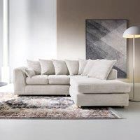 A grey jumbo cord corner sofa£ Perhaps in brown or white£ Enjoy a lavish chaise corner sofa upholstered in the most pristine soft structured cord chenille fabric there is. Soft to the touch. Opulent and inviting in its visual appeal. Angular arms, a pared back and generously filled scatter cushions provide a very contemporary style statement. A sofa destined to become your old faithful.