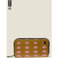 The Forget Me Not Wallet by Orla Kiely is a modern classic, designed to blend style with everyday practicality. Crafted from glossy polyester, it features a secure zip-around closure and a thoughtfully organised interior with twelve card slots, two slip pockets for notes and receipts, plus a central zip compartment for coins. Finished with signature jacquard lining and sleek hardware, this functional yet elegant wallet is destined to become your daily essential.
