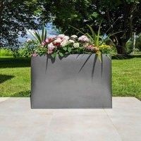 This 80cm tall trough planter, a striking fusion of textured black and silver, stands as a testament to modern elegance. Crafted from galvanised aluzinc and powder coated for durability, it's the epitome of resilience. Ideal for gardeners seeking tall planters, this zinc planter exudes sophistication, making it a standout choice among outdoor planters. Perfect for huge planters or large plant pots, it's a versatile flower pot for any garden. | Woven Wood 80cm Long Zinc Silver & Black Textured 60cm Tal...