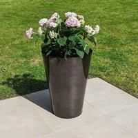 Immerse your living space in contemporary elegance with our 56cm high cone planter in platinum black. Crafted with galvanised steel, its durability ensures long-lasting beauty. The powder-coated finish exudes sophistication, making it perfect for both indoor and outdoor use. Versatile as a large plant pot or indoor flower pot, it seamlessly blends functionality with style, enriching any environment with effortless charm. | Woven Wood 56cm Zinc Platinum Black Cone Planter