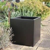 Introducing this sleek and durable cube planter crafted from aluzinc, measuring 50cm on each side. This versatile tree planter boasts ample space, perfect for accommodating large trees. Its modern design and sturdy construction make it an ideal choice for those seeking an extra large plant pot for trees, blending functionality with contemporary style. | Woven Wood 50cm Zinc Galvanised Matte Black Square Planter