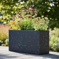 This 90cm black stone zinc planter combines lightweight practicality with exceptional durability. Featuring a textured stone effect, this zinc planter offers a modern, elegant design perfect for enhancing patios, gardens, or entrances. Its durable zinc construction ensures long-lasting use, making it ideal for shrubs, flowers, or small trees. Planter finish will vary: The planters are handfinished and due to the metallic nature of the finish the look will vary depending on lighting. Constructed to last,...