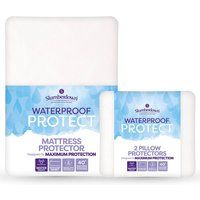 Our Waterproof Mattress Protector + Pillow Protector offers reliable protection to keep your duvets and pillows safe from spills, stains, and accidents. Not only do they protect against everyday mess, but they also help to preserve the life and quality of your duvets and pillows, ensuring your sleep space stays clean, fresh, and comfortable. Made from premium soft terry towelling, these protectors deliver ultimate comfort, enhanced breathability, and maximum liquid absorption. Plus, they are machine washable (up to 300 washes) and tumble dryer friendly making them convenient and easy to care for. Tumble Dry Do not iron Waterproof Includes 2 x Pillow Protectors in all size options Machine Washable 100% Microfibre | Slumberdown Waterproof Protect Mattress & 2 Pillow Protectors in White | Size: Single - Manufacturers part number: Slumberdown_5061016122822