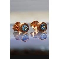 A beautiful pair of Blue Topaz Sterling Silver November Birthstone Stud Earrings features faceted semi precious Blue Topaz stones in a naturally textured Sterling Silver setting. As the birthstone for November, Blue Topaz makes a great gift for those whose birthday falls in that month. | Otis Jaxon London Women's Blue Topaz Sterling Silver November Birthstone Stud Earrings in Rose Gold