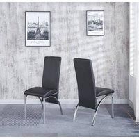 Set of 4 Marvel Chairs crafted with Faux Leather and featuring a sturdy Chrome Frame. Ideal for kitchen dining, these chairs are designed to complement compact-sized tables in dining rooms. Engineered with ergonomics in mind, these dining chairs provide optimal support, ensuring comfort during extended periods of sitting. The chair backs are contoured to naturally accommodate the user's body, while the deep foam-padded cushions enhance the luxurious feel, making these dining chairs a delightful choice for relaxation. | Modernique Set of 4 Dining Chairs in Faux Leather Chrome Frame Solid Build in Black - Manufacturers part number: Modernique_5061017320661