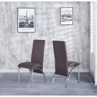 Set of 4 Marvel Chairs crafted with Faux Leather and featuring a sturdy Chrome Frame. Ideal for kitchen dining, these chairs are designed to complement compact-sized tables in dining rooms. Engineered with ergonomics in mind, these dining chairs provide optimal support, ensuring comfort during extended periods of sitting. The chair backs are contoured to naturally accommodate the user's body, while the deep foam-padded cushions enhance the luxurious feel, making these dining chairs a delightful choice for relaxation. | Modernique Set of 4 Dining Chairs in Faux Leather Chrome Frame Solid Build in Brown - Manufacturers part numbers: Marvel|Modernique_5061017320685