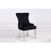 New Model Velvet, High Back Stunning Soft Padding Dining Chairs with Golden Chrome Legs. Available in 3 different colours Black Grey and Cream (beige). This is one of our Velvet Popular Range Updated Version with Studs and Knocker at the Back. Thick Cushion padded Dining Chairs in Black Brown Grey and Cream Available for Immediate Dispatch. Product Dimensions: Approximately Total Height= 108 cm Seat Height= 50 cm Width = 44 cm Leg Space= 55 cm (front to back) Leg Space= 41 cm (side to side front) Seat Width / Depth= 44 cm Note: Self Assembling Required, where 4 legs need to be attached with the main body part along with provided hardware fittings & Tools. If you may need further information, do let us know | Modernique A Pair (x2) Velvet Solid Back Dining Chairs with Chrome Knocker & Legs in Black - Manufacturers part number: Modernique_5061017321316