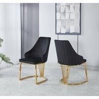 New Model Velvet, High Back Stunning Soft Padding Dining Chairs with Golden Chrome Legs. Available in 3 different colours Black Grey and Cream (beige). This is one of our Velvet Popular Range Updated Version with Studs and Knocker at the Back. Thick Cushion padded Dining Chairs in Black Brown Grey and Cream Available for Immediate Dispatch. Product Dimensions: Approximately Total Height= 108 cm Seat Height= 50 cm Width = 44 cm Leg Space= 55 cm (front to back) Leg Space= 41 cm (side to side front) Seat Width / Depth= 44 cm Note: Self Assembling Required, where 4 legs need to be attached with the main body part along with provided hardware fittings & Tools. If you may need further information, do let us know | Modernique Set of 2 Velvet Upholstered Dining Chairs with Golden Metal Legs in Black - Manufacturers part number: Modernique_5061017321774