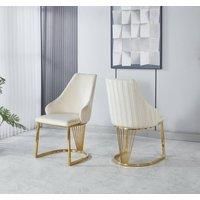 New Model Velvet, High Back Stunning Soft Padding Dining Chairs with Golden Chrome Legs. Available in 3 different colours Black Grey and Cream (beige). This is one of our Velvet Popular Range Updated Version with Studs and Knocker at the Back. Thick Cushion padded Dining Chairs in Black Brown Grey and Cream Available for Immediate Dispatch. Product Dimensions: Approximately Total Height= 108 cm Seat Height= 50 cm Width = 44 cm Leg Space= 55 cm (front to back) Leg Space= 41 cm (side to side front) Seat Width / Depth= 44 cm Note: Self Assembling Required, where 4 legs need to be attached with the main body part along with provided hardware fittings & Tools. If you may need further information, do let us know | Modernique Set of 2 Velvet Upholstered Dining Chairs with Golden Metal Legs in Beige - Manufacturers part numbers: 5234|Modernique_5061017321798