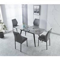 Transform your dining space with this sophisticated 5-piece dining set that perfectly marries form and function. The centrepiece is an elegant Avorio table featuring a luxurious Sintere stone top that adds a touch of refinement to any room. The table's sturdy black metal frame provides excellent stability whilst maintaining a sleek, modern aesthetic. Accompanying the table are four matching chairs upholstered in premium faux leather, offering both comfort and style. The chairs' ergonomic design includes high backs for optimal support, whilst their black metal frames complement the table perfectly. This contemporary dining set is ideal for both everyday meals and entertaining guests, fitting seamlessly into modern interiors. The stone top surface is not only visually striking but also practical for daily use. Whether placed in a compact flat or spacious dining room, this set creates an inviting atmosphere for memorable dining experiences. The clean lines and monochromatic colour scheme ... - Manufacturers part numbers: 5pcdiningset-avorio|Modernique_5061017322160