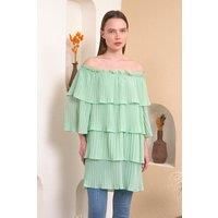 Crafted from viscose, this blouse offers both comfort and style. The relaxed fit and off shoulder provide a laid-back vibe, while the layered design adds an element of elegance. Perfect for any occasion, from casual outings to special events, this versatile piece is a wardrobe essential. Elevate your look with this timeless black blouse that effortlessly combines comfort and chic. | HOXTON GAL Women's Relaxed Fit Off-Shoulder Pleated Layer Detailed Blouse Top in Green - Manufacturers part number: HOXTON GAL_5061023263983