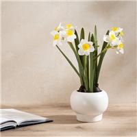 * Cheerful spring flowers* Artificial* No maintenance required* Complete with white ceramic pot Bring the essence of spring to your home all year round with these artificial daffodils. Complete with elegant white ceramic pot, these delightful daffodils will cheer up any space with their bright yellow faces, and with no watering required. - Manufacturers part number: 30958149
