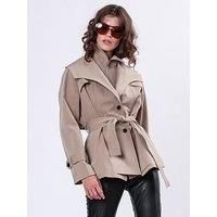Religion Rhodium Trench Coat With Belt And Double Fastening In Structured Crepe The Rhodium Trench coat is a short mac style Jacket in a soft, but structured crepe, featuring a double collar, zip funnel neck and button fastening, patch pockets, and a belted waist which can be worn 2 ways. With adjustable belt details, plus the all-important inside pocket, it offers ultimate effortless style for transitional weather, seamlessly blending function and fashion for those in-between seasons all year around. T...