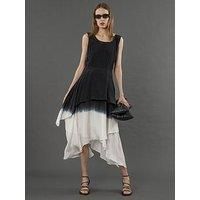 Religion Serpentine Asymmetric Dress In Dip Dye Introducing the Serpentine dress: a midi-length marvel featuring a chic handkerchief hem with black and white dip dye. With a boat neckline, sleeveless design, and easy fit, it's effortlessly elegant. The V-back detail adds allure, while the zip fastening ensures a perfect fit. Ideal for summer occasions, this dress exudes charm and sophistication in every step. Great for occasions as well as holidays. The model wears a size 10. Length from the top: 130 c... - Manufacturers part number: WG2U0