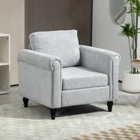 Use this HOMCOM accent chair in your living room corner, guest bedroom, sunroom and beyond: the ideal place you can relax and unwind. The simple, classic design makes it a versatile piece which sits well all over the home. Filled with sponge for comfort, it comes with a high back and arms to offer plenty of support.A wooden frame for a strong core, finished with wooden legs for support. So sit down, and relax.Features:. Soft and durable faux chenille upholstery. Simple and classic design makes this a versatile piece. Soft sponge padding, with 'S' springs and elastic bands to retain shape. Pillow cover is removable and washable for hygiene. Wooden frame and legs for strong support. Adjustable foot pads keep it stable on uneven floor. Maximum load 125kg, assembly required.Specification:. Colour: Light Grey, Black. Materials: Chenille (100% Polyester), Foam, Eucalyptus Wood, Metal, Rubber Wood. Overall Dimension: 84W x 73D x 81H cm. Seat Size: 53W x 46D x 43H cm. Seat Thickness: 12.5cm. B... - Manufacturers part numbers: HOMCOM_5061025033416|UK839-892V70LG0331