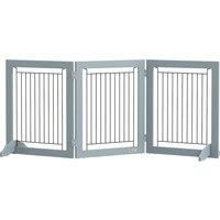 With this PawHut dog fence, keeping pets in an area is safe and simple. Made from MDF and steel it's strong and stable, whilst the support feet keep it stable and balanced, ensuring it stays up right. Consisting of three panels, it's fixed together with strong hinges the shape can be changed to suit different sized rooms. When not in use, fold the gate to store and save space. It's a brilliant way to make sure pets won't go to places they shouldn't.Features:Made of MDF and steel for sturdinessConsi... - Manufacturers part number: D06131V00GY