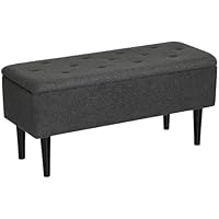 Storage with a seat to rest on occasionally - this ottoman is a handy double-duty piece for the bedroom, hallway, office and more. Open the lid to reveal a 85cm x 28cm space, great for small furnishings. Four wooden legs for support when loaded and when you're seated. A simple and stylish design, this end of bed storage bench works well with your current furniture.Features:. Storage and a seat - a duo-use piece for your bedroom, hallway and more.. 85cm x 28cm inner storage is great for small furnishings.. Padded top to sit comfortably for short moments.. Wooden legs for support with felt pads to gently protect floor. Maximum load 120kg.. Assembly required.Specifications:. Colour: Dark Grey and Black.. Material: Polyester, Foam and Rubberwood.. Overall Dimensions: L: 95cm x W: 38cm x H: 45cm.. Storage Size: W: 85cm x D: 28cm x H: 20cm.. Leg Height: 20cm.. Weight Capacity: 120kg.