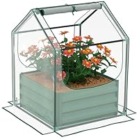Double the growing power with this Outsunny outdoor planter.A steel garden planter base with top plastic cover: using together is best, but can be used separately.The steel base is galvanised for strength and suitability outdoors: the open bottom means no water build-up, as well as direct soil contact for best plant growth.The plastic cover creates a safe shield, complete with two windows for access and fresh air.Features:Two-part design: bottom raised bed base and plastic greenhouse coverPlastic cover provides plant protection inside, also traps heat.10cm edge to bury into soilGalvanised steel base creates safe shield for plants.Open bottom for direct contact with soilTwo roll-up windows: easy access and fresh air insideAssembly requiredSpecification:Colour: Clear and GreenMaterial: Plastic, SteelGreenhouse Dimensions: 70L x 70W x 90HcmGarden Bed Dimensions: 61L x 61W x 29.5HcmPlanting Area Dimensions: 59.5L x 59.5W x 29.5HcmWindow Size: 55W x 80HcmWindproof Level: 4Item Label: 845-9... - Manufacturers part number: UK845-971V02CR0331