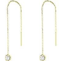 Whether you are wearing casual everyday attire or a fancy dressed-up outfit, these sophisticated yet timeless Chain Solitaire Earrings add elegance to your overall persona. Fashioned in a 925 recycled sterling silver, it showcases a dangling drop chain with a solitaire set cubic zirconia at the end that allures brilliantly. It has a sturdy back lock for a comfy, secure, or worry-free wear and take-off experience. These drop earrings come in gold and silver color that give an immense sparkle whenever you...