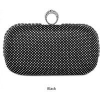 Double side diamante evening bag with big diamantes along the edges, diamante-embedded ring clasp and detachable chain | JFY Women's Ring Clasp Double Side Diamante Clutch Bag in Black - Manufacturers part number: JFY_5061042500144