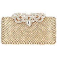 Double-side Diamante bag with diamante embeded metal clasp, detachable chain, Size: 18x10x6 cm | JFY Women's Metal Pattern Clasp Diamante Clutch Bag in Rose Gold - Manufacturers part number: JFY_5061042500199