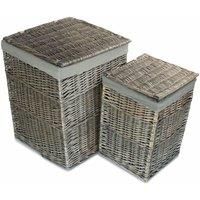 Set of 2 Antique Wash Square Laundry Basket with Grey Sage Lining. Full antique wash finish willow with cream faux leather straps and a removable cotton/polyester lining with integral handles. . Antique Wash Willow. Integral handles Faux Lether Straps Hinges. Manufactured from sustainable materials. Colours and finish could vary. Size Small Depth 35 x Height 50 x Width 34cm Weight 1.7kg Large Depth 46 x Height 61 x Width 46cm Weight 3.8kg