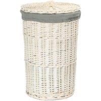 Small Round White Wash Laundry Hamper with Grey Sage Lining. Full white wash finish willow with a removable cotton/polyester lining. White Wash Willow. Integral handles Faux Lether Straps Hinges. Manufactured from sustainable materials. Colours and finish could vary. Size Depth 33 x Height 50 x Width 33cm Weight 1.1kg - Manufacturers part number: H080GRY/1