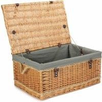 Full buff willow with real leather straps and rope handles and a removable cotton lining. Attractive looking . High Quality, Well made Basketware. Natural product so dimensions can vary slightly. Manufactured from sustainable materials. Colours and finish could vary. Size Depth 400 x Height 290 x Width 620 Weight 3kg Material Wicker | Red Hamper 62cm Rope Handled Picnic Basket with Grey Lining - Manufacturers part number: EH003GRY